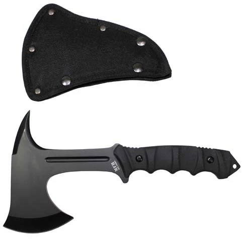 Die Tomahawk Axt Comox von MFH ist mit einem G10-Griff ausgestattet. Zum einfacheren Tragen oder Ziehen von kleineren Holzstämmen hat die Axt auf der Rückseite eine Ziehhilfe. Die Axt ist für sämtliche Anwendungszwecke, egal ob im taktischen Einsatzbereich oder für den Outdooreinsatz geeignet.