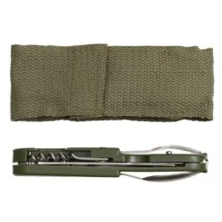 Das US Bajonett von MFH mit einer groben Sägezahlung auf der Klingenrückseite. Die Klinge des Messers hat in Verbindung mit der Scheide eine Drahtschneidefunktion. Die robuste Kunststoffscheide mit aufgesetzter Tasche dient zur sicheren Aufnahme des Messers. Im Messergriff ist ein kleines Notfallpack mit Angehaken, Schnur usw. „versteckt“.