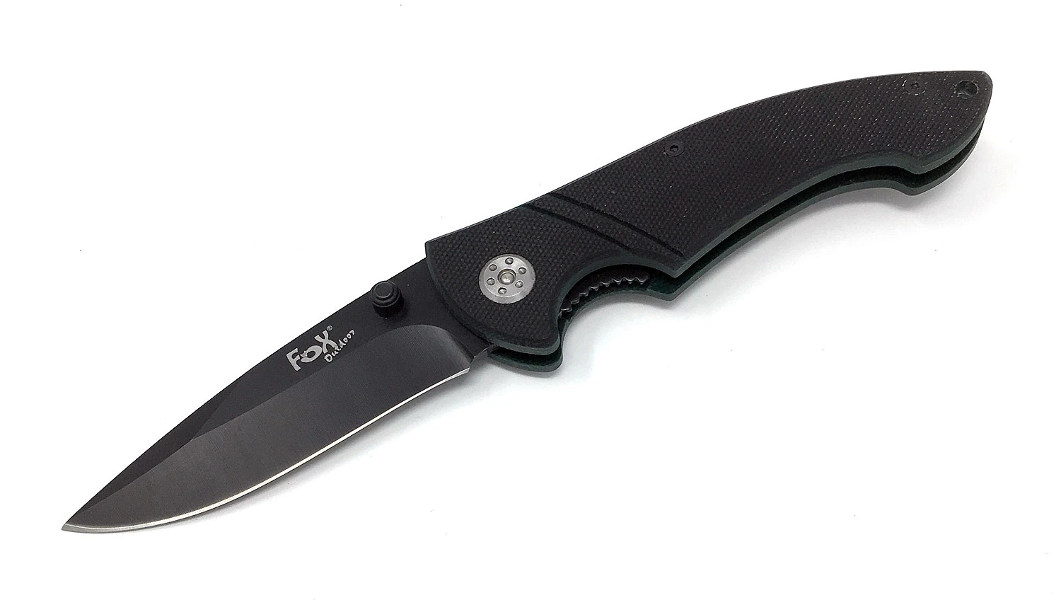 Das günstige Brotzeitmesser von Fox Outdoor ist mit schwarzer Klinge und grün-schwarzem Kunststoffgriff ausgestattet. Dank des leichten Gewichts und der kompakten Grösse hat es Platz in jeder Jacken- oder Hosentasche.