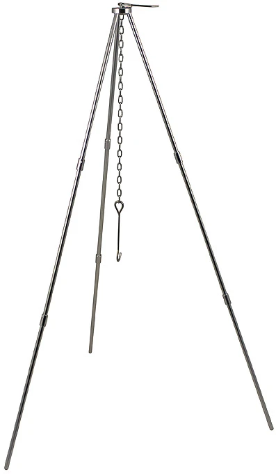 Mit dem Fox Outdoor Dreibein Grill perfektionieren Sie Ihre Outdoor-Küche. Der Camping Dreibeingrill ist in je 3 Rohrteile unterteilt, die sich per Schraubverschluss zusammenschrauben lassen. Der aufgebaute Grill ist dennoch unglaublich stabil. Durch einen Stift oben am Drehteller ist die Kette beliebig höhenverstellbar und hilft beim schonenden Kochen auf offenem Feuer. Am Ende der Kette befindet sich ein Haken, an den Gulaschkessel, Grillpfanne oder Feuerschale eingehängt werden können. Der Dreibein wird inkl. praktischer Tragetasche geliefert in der alle Teile bequem transportiert werden können.