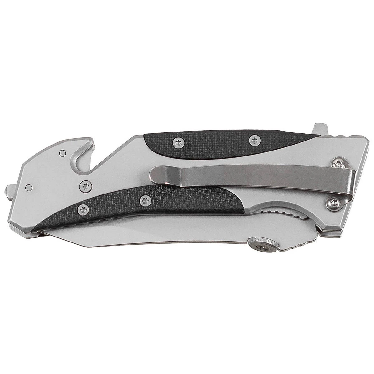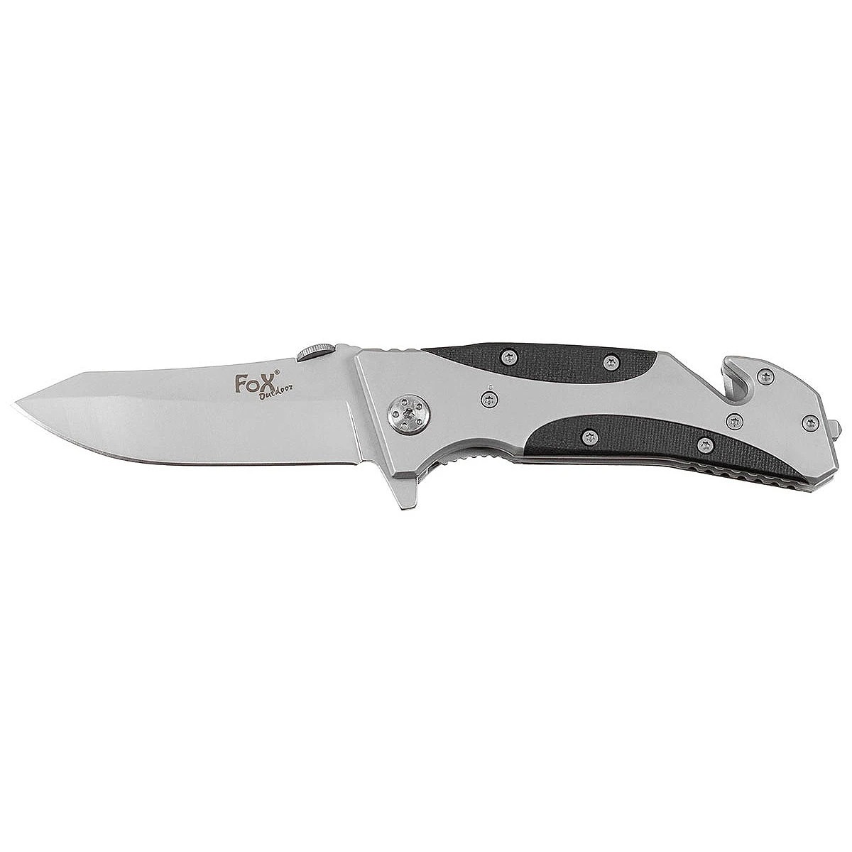 Das handliche Klappmesser von Fox Outdoor ist mit Gutschneider und Glasbrecher ausgestattet. Über die scharfe Klinge im Griffrücken können Seile oder Gurte durchtrennt werden. Am Griffrücken befindet sich ein Stahldorn, der zum zertrümmern eine Glasscheibe dient. Dank Liner-Lock Verfahren ist das Einhand Taschenmesser für Links- und Rechtshänder geeignet.