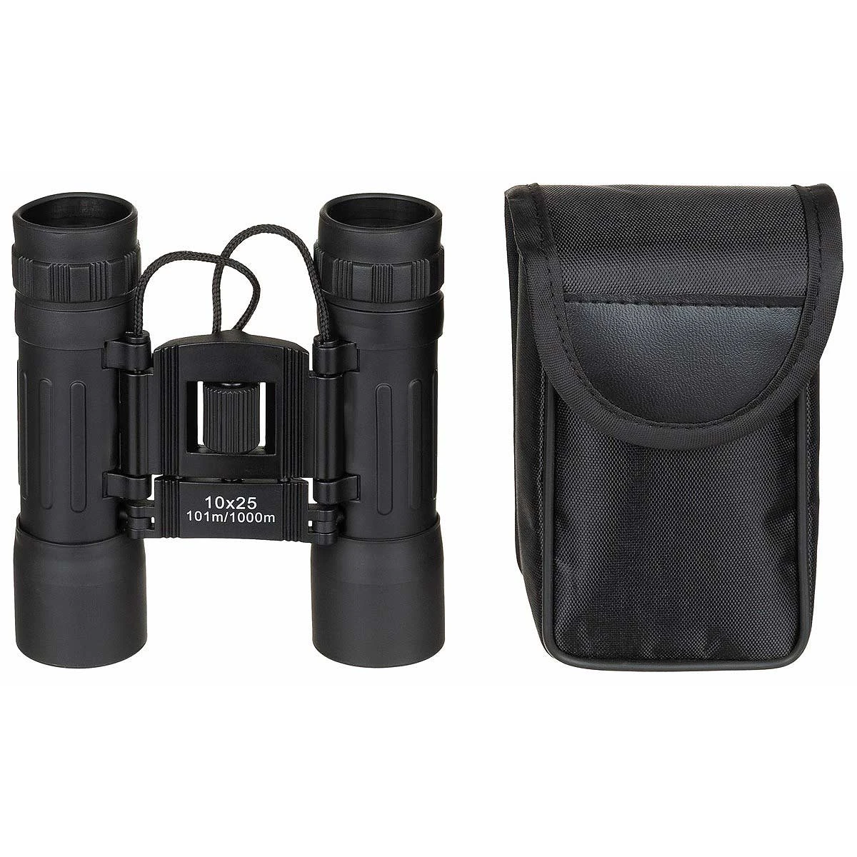 Das schwarze faltbare Fernglas 10×25 mit 10-facher Vergrösserung und einem Objektivdurchmesser von 25mm hat ein tolles Preis-Leistungsverhältnis. Dank rutschfester Gummierung, umstülparer Augenmuschel und Umhängekordel ist Fernglas sehr angenehm in der Anwendung. Das Fernglas in schwarz wird inkl. gepolsterter Gürteltasche geliefert, das auch vor Stössen und Erschütterungen schützt.