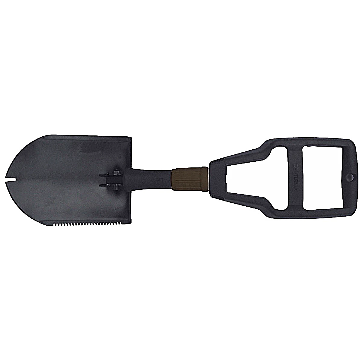 Der US Klappspaten von Fox Outdoor ist trotz leichtem aber sehr Bruchfestem Kunststoffgriff auch für sehr harte Einsätze geeignet. Die Sägekante am Metall Schaufelblatt ermöglicht auch das absägen kleinerer Äste.