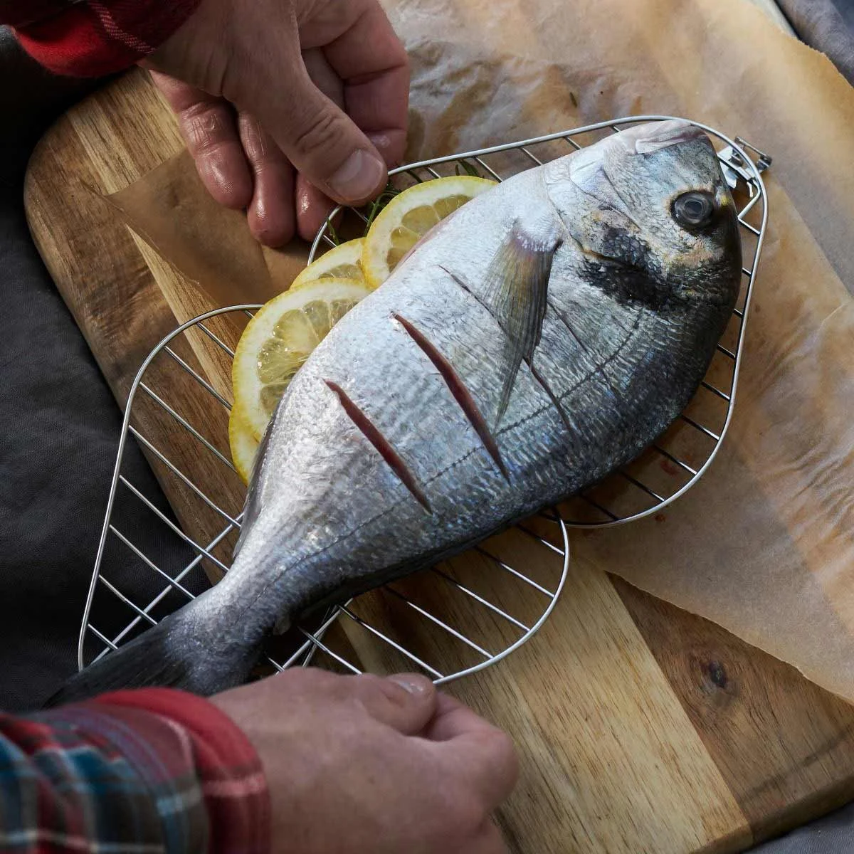 Mit dem Light my fire GrandPa´s Firegrill wird das Grillen immer und überall zum Kinderspiel. Der faltbare Grillrost mit einer Grösse von ca. 15,6×16,5×2,5cm wird einfach an einen beliebigen, aufgesammelten Stock geklemmt und der Grillspaß kann beginnen. Jedes beliebige Grillgut vom frisch gefangenen Fisch über Gemüse, Fleisch und Toast wird einfach in den Faltrost gelegt und über der Glut oder auch dem offenen Feuer gegrillt. Die smarte Konstruktion aus Edelstahl lässt die den Rost auf nahezu jeden beliebigen Stockdurchmesser klemmen. Aufgeklappt kann der Faltgrill auch als normaler Grillrost benutzt werden. GrandPa´s Firegrill aus rostfreiem Edelstahl ist leicht zu reinigen und zudem spülmaschinenfest.